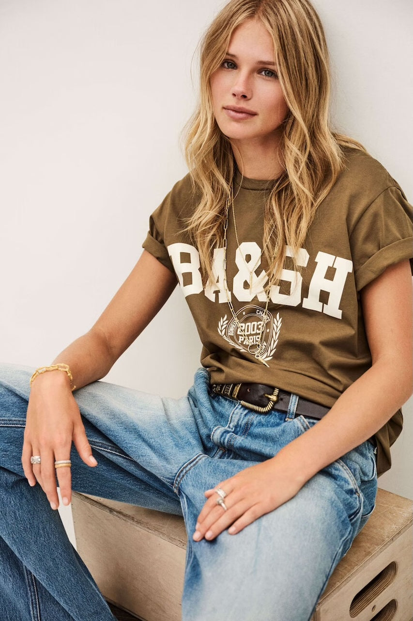 A timeless essential with a modern edge, the Bash Paris Ioni Tee is the perfect blend of comfort and style. Crafted from 100% cotton, this soft and breathable T-shirt features a classic crew neck and short sleeves for an effortlessly casual look. The bold logo print at the front adds a signature touch, making it a versatile staple for any wardrobe.