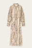 The Bash Paris Sahara Dress is a striking, flowy silhouette designed for effortless elegance. Featuring a fitted waist with a gathered tie and a button-front fastening, it offers a flattering, adjustable fit. Long sleeves with fitted cuffs and subtle gathering at the shoulders add refined structure, while the mixed animal print pattern brings a bold, contemporary edge.