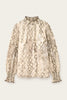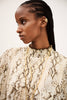 The Bash Paris Shamy Blouse is a bold, elegant statement piece with a flowing silhouette and striking snake print. Designed with a high neckline and long puff sleeves, it combines structure and movement for a refined, feminine look. Smocked details at the cuffs and back add texture, while gathered sleeves enhance the soft, romantic shape. Fully lined for comfort (except sleeves), this blouse drapes beautifully for all-day wear.
