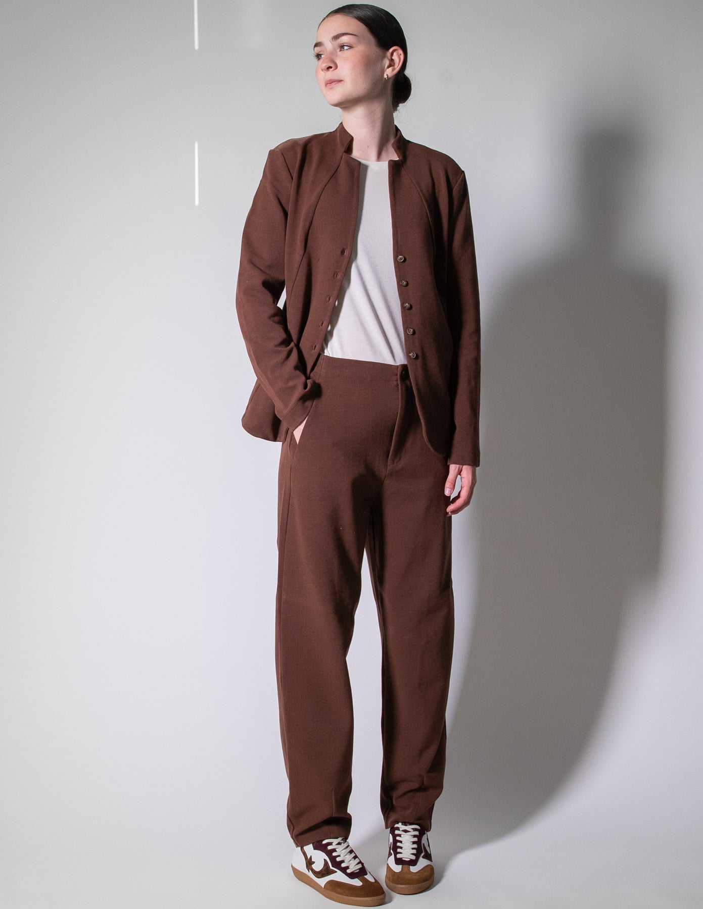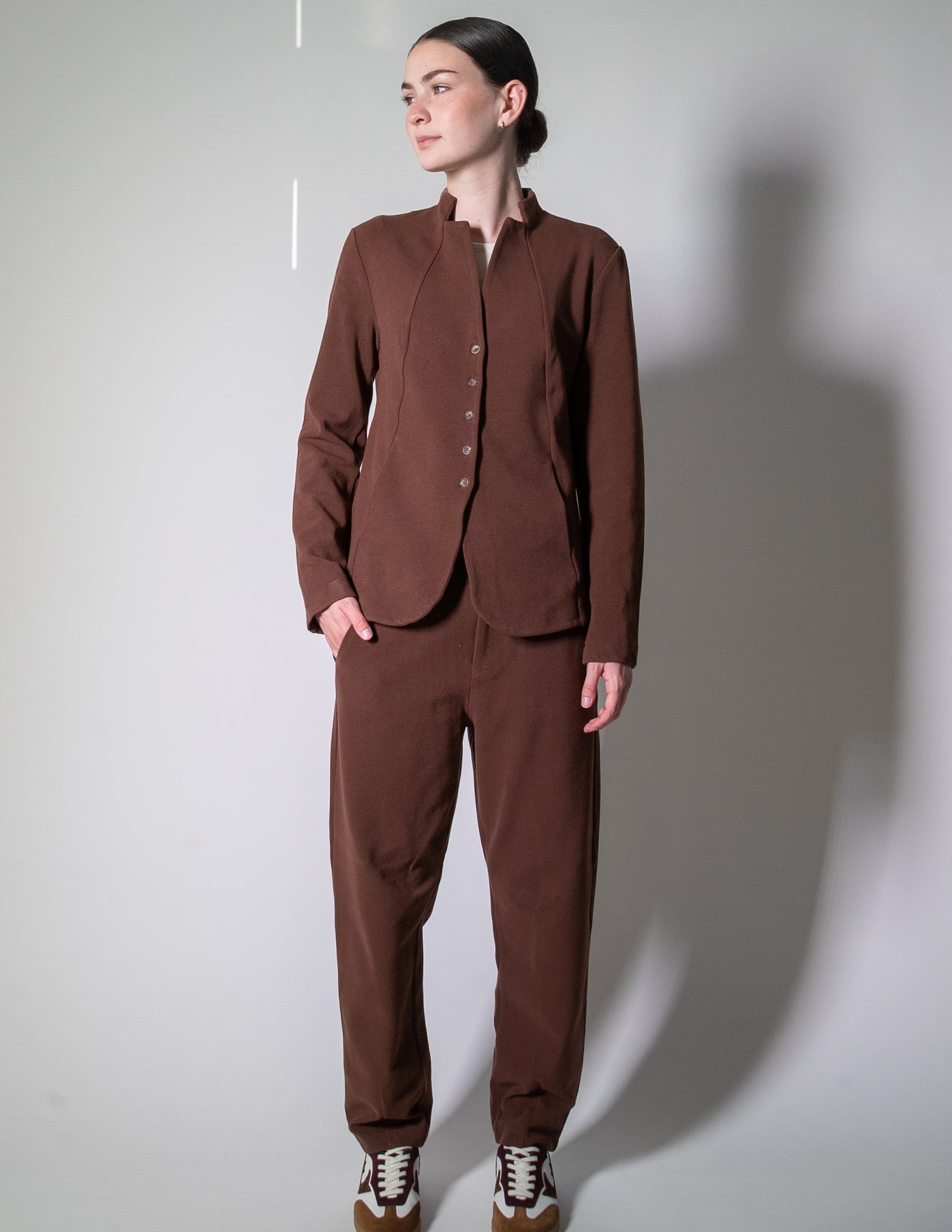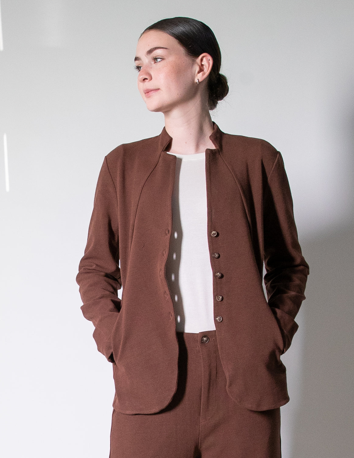 Crafted in Italy from a luxuriously soft, mid-weight stretch fabric, this jacket offers the perfect balance of structure and flexibility, making it comfortable enough for all-day wear. Effortlessly versatile, it layers beautifully over a blouse for a polished look or pairs back with relaxed trousers for a more casual edge.