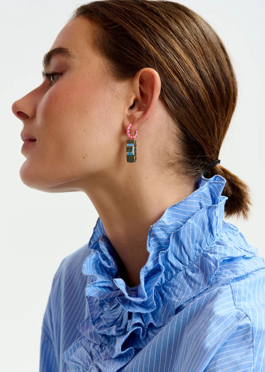 “Bee”ep beep! These Istritti Earrings from Essentiel Antwerp are driving your style to buzz-worthy new heights. One hoop features a rhinestone-encrusted enamel car, while the other showcases a colourful enamel bee. Playful, quirky, and full of personality—these mismatched earrings bring a touch of fun to any outfit.
