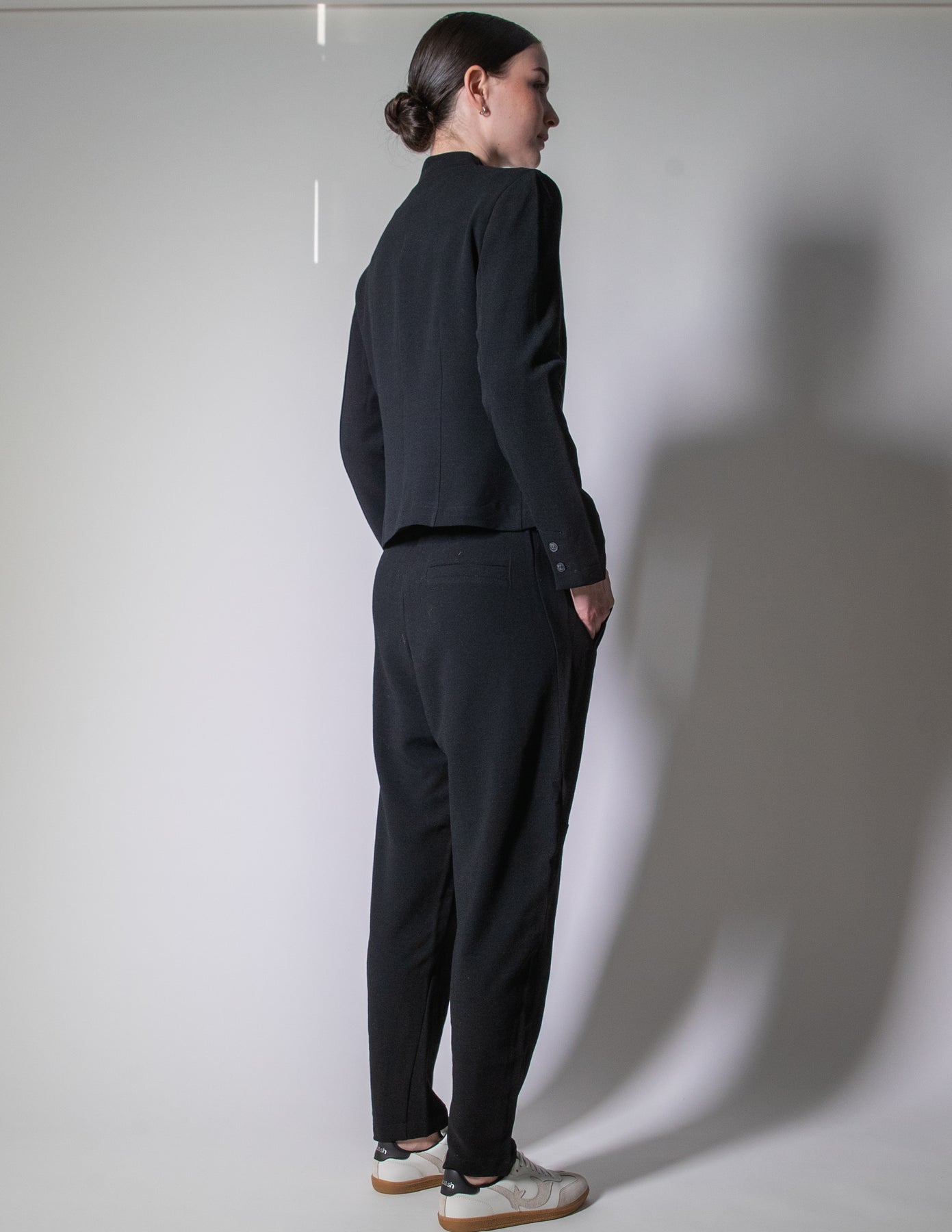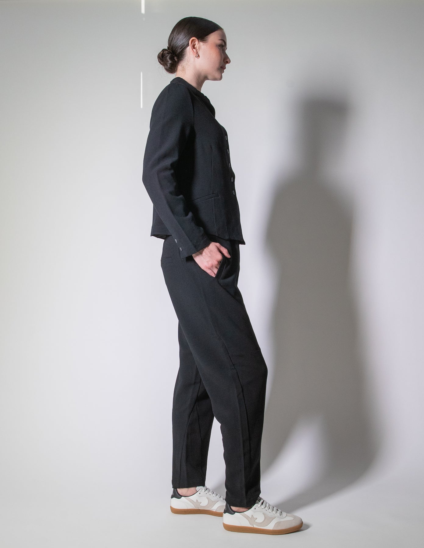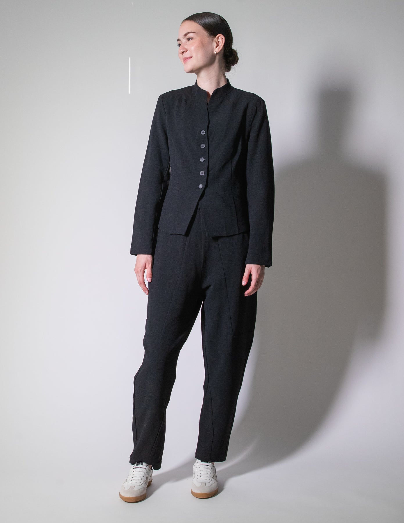 Crafted in Italy from a luxuriously soft, mid-weight wool blend, it offers the perfect balance of structure and stretch, ensuring comfort and ease throughout the day. Pair it with the matching relaxed trousers for a laid-back yet polished look, or style it over soft layers for everyday sophistication.