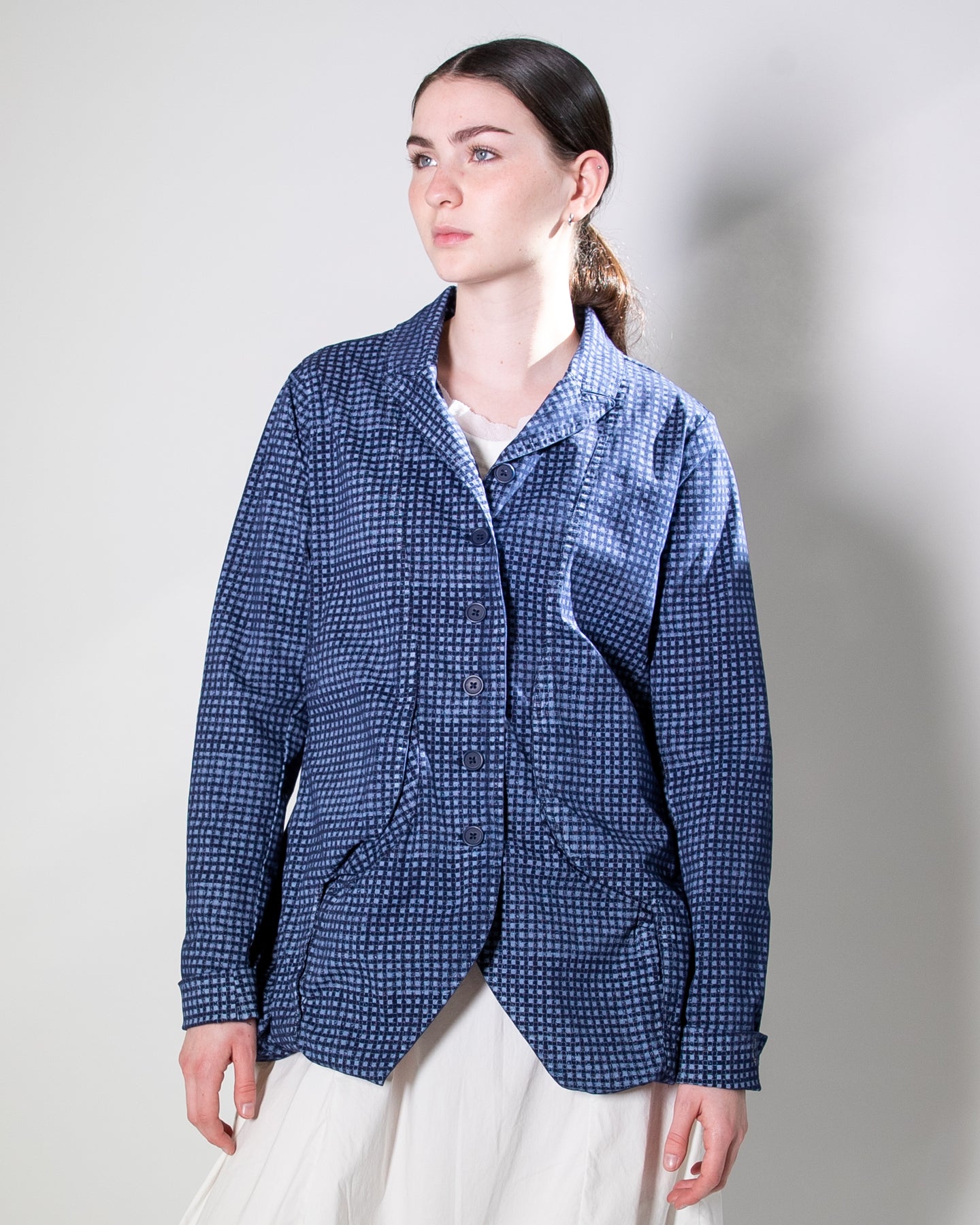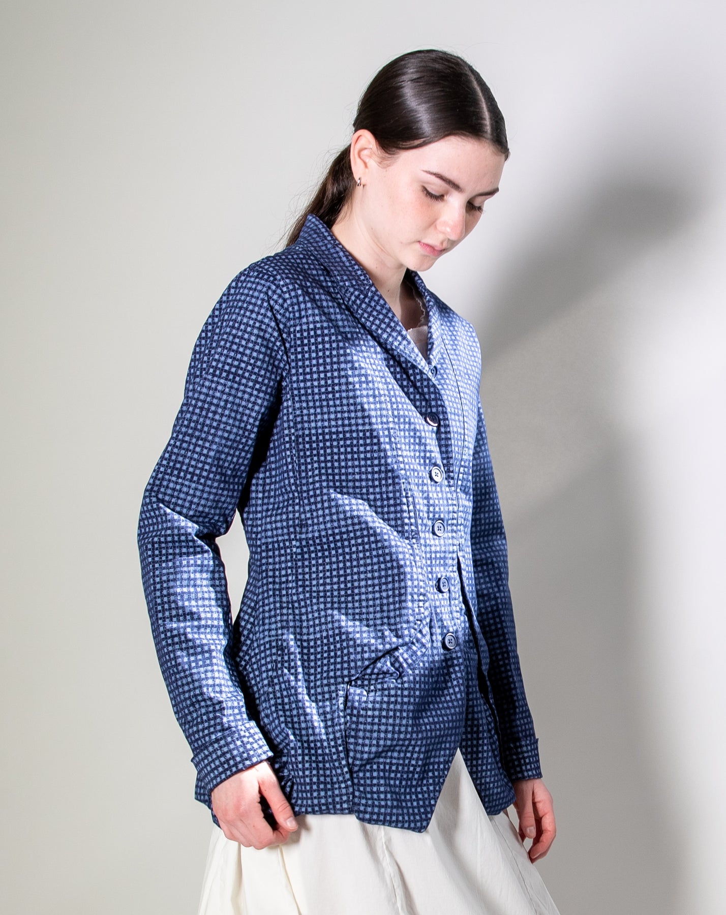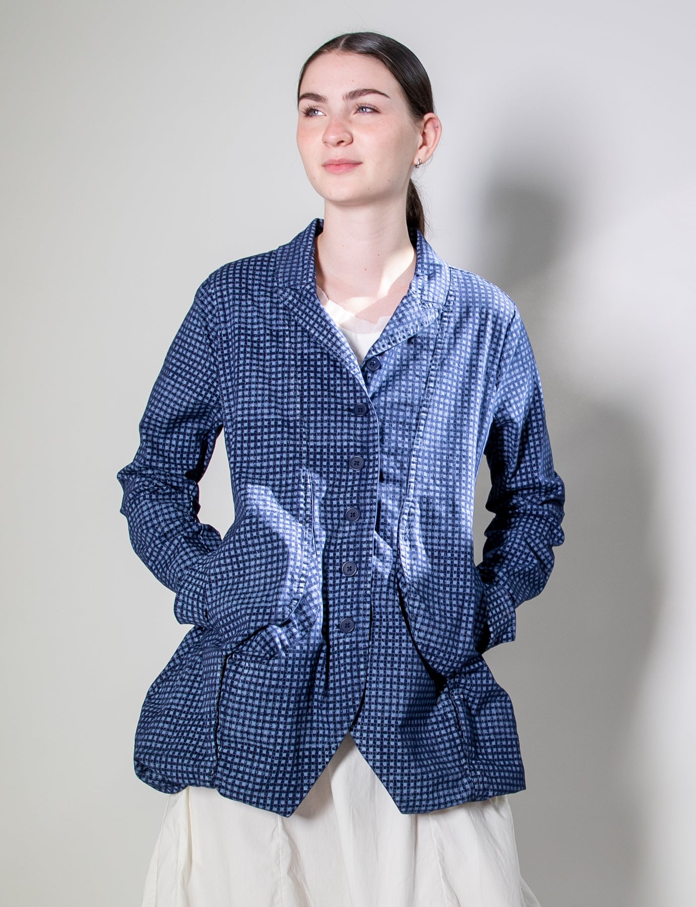Crafted from Rundholz’s signature stretch fabric, this jacket offers exceptional comfort and ease, while long sleeves, a button-front closure, and a classic lapel bring timeless tailoring into the mix. Generous side seam feature pockets complete the design, balancing practicality with bold style.