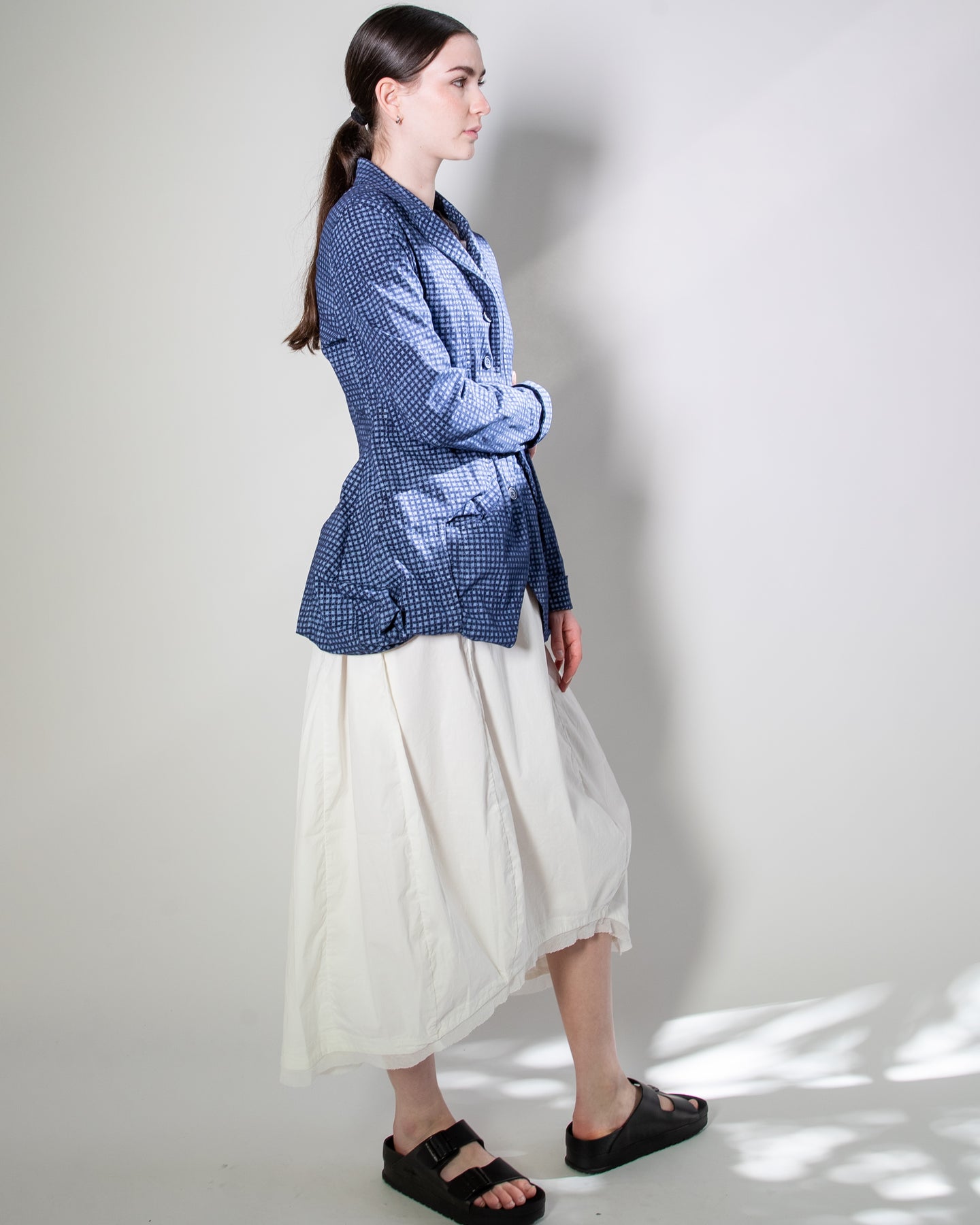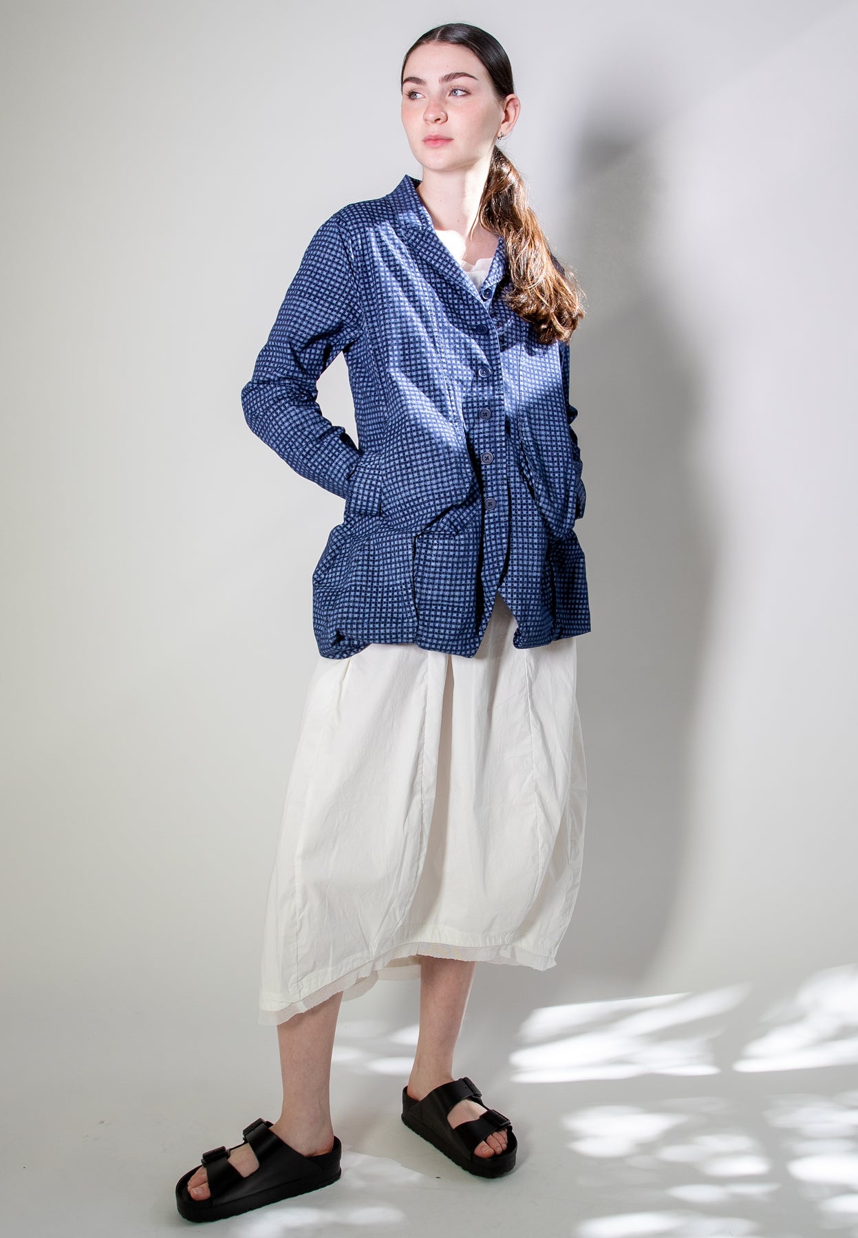 The Rundholz Black Label Check Jacket blends avant-garde detailing with everyday wearability. Designed with rear inverted seams, it creates a striking fluted effect that adds both volume and sculptural shaping to the silhouette.