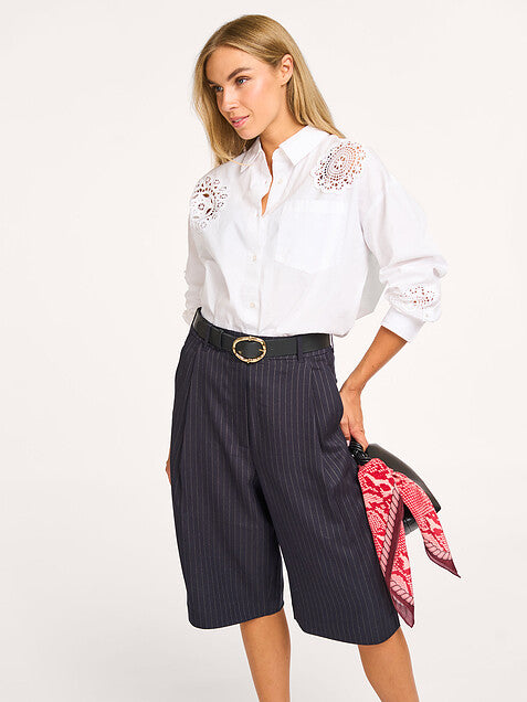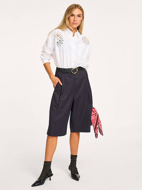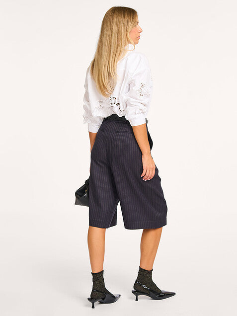 Effortlessly balancing sophistication and ease, the Intiro Shorts from Essentiel Antwerp are tailored in a classic Bermuda silhouette. Crafted from a midweight fabric, they feature soft pleats that fall into wide, structured legs, finishing just below the knee for a refined, modern look. Details like slanted front pockets, back welt pockets, and pressed creases enhance their polished feel, while belt loops and a zip-and-button fastening complete the design. Perfectly versatile, style them with a crisp shirt and mules for work, or pair with a relaxed knit and sneakers for effortless off-duty chic.