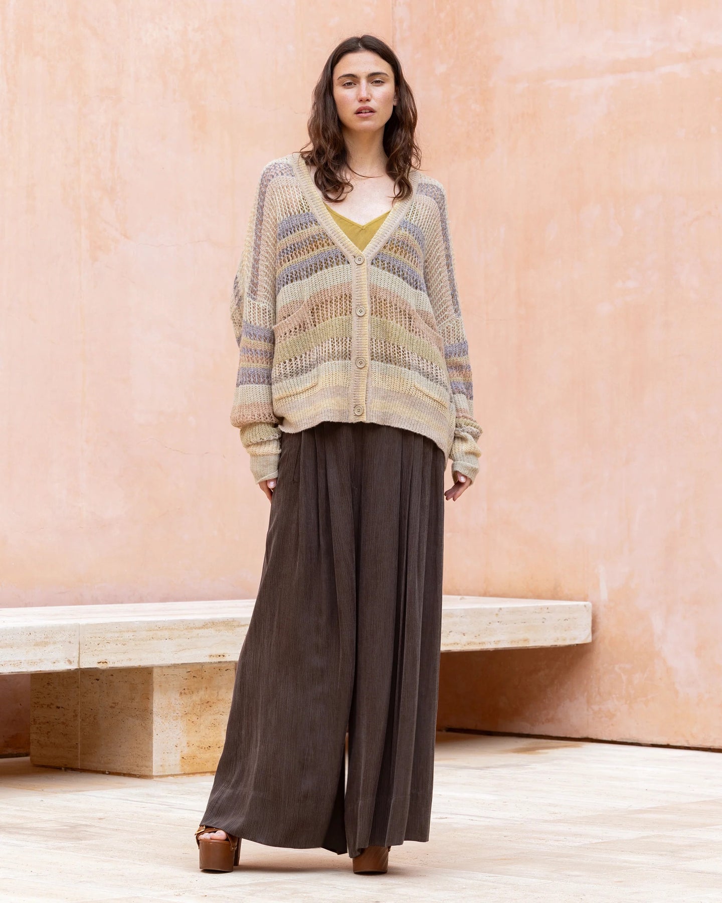 Effortless elegance meets modern comfort in the Goliath Trouser from Mes Demoiselles. Crafted from a lightweight blend of cupro and viscose, these trousers offer a fluid, refined drape that moves beautifully with the body.