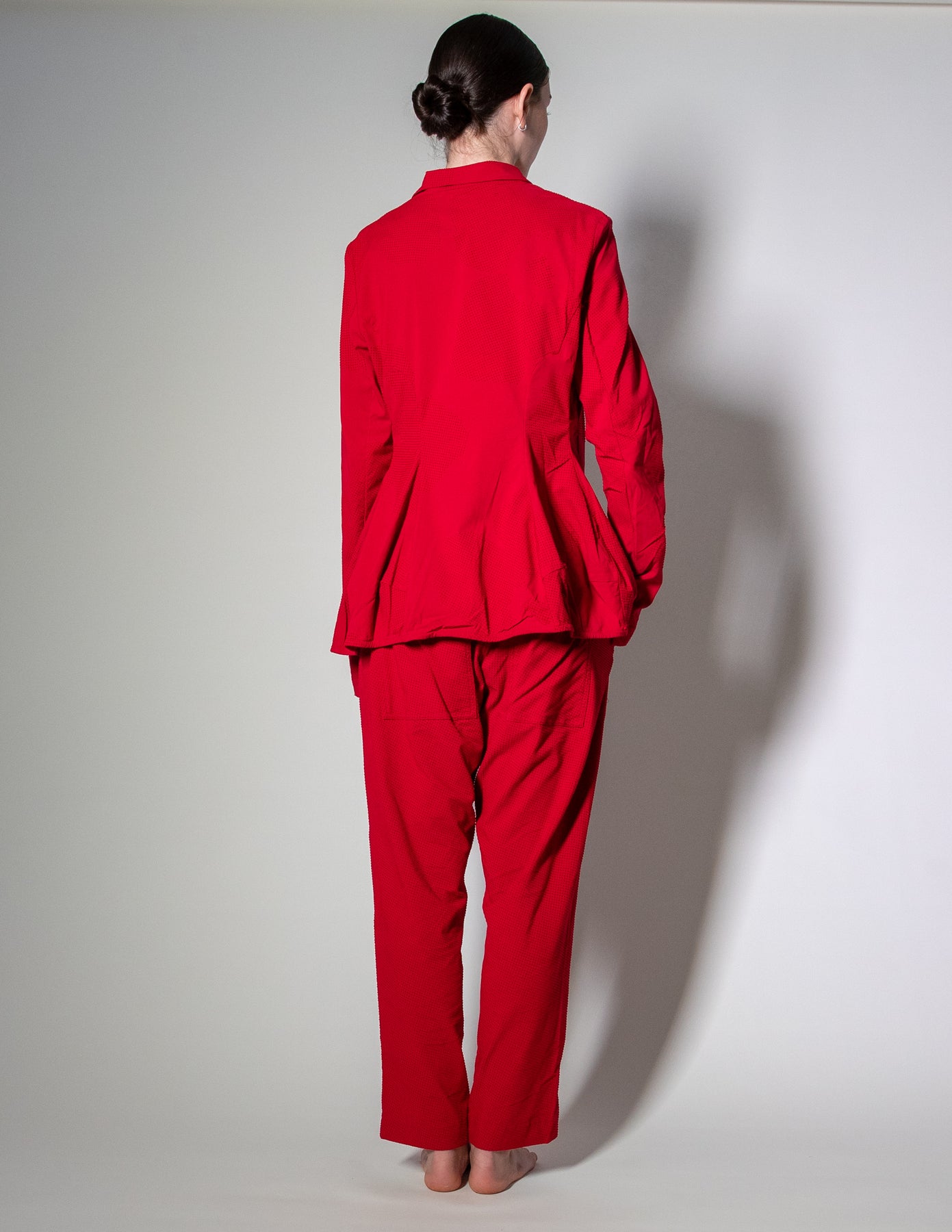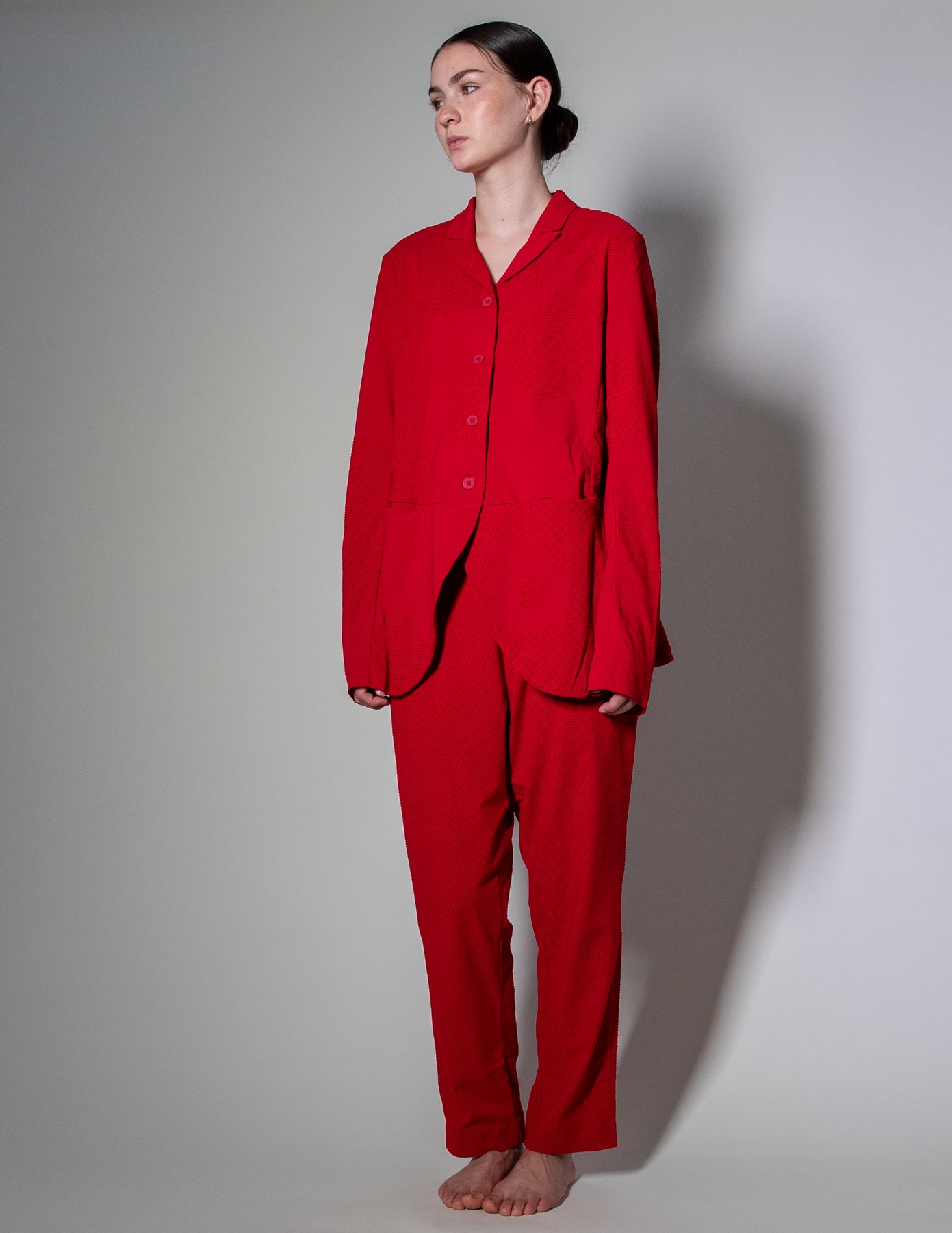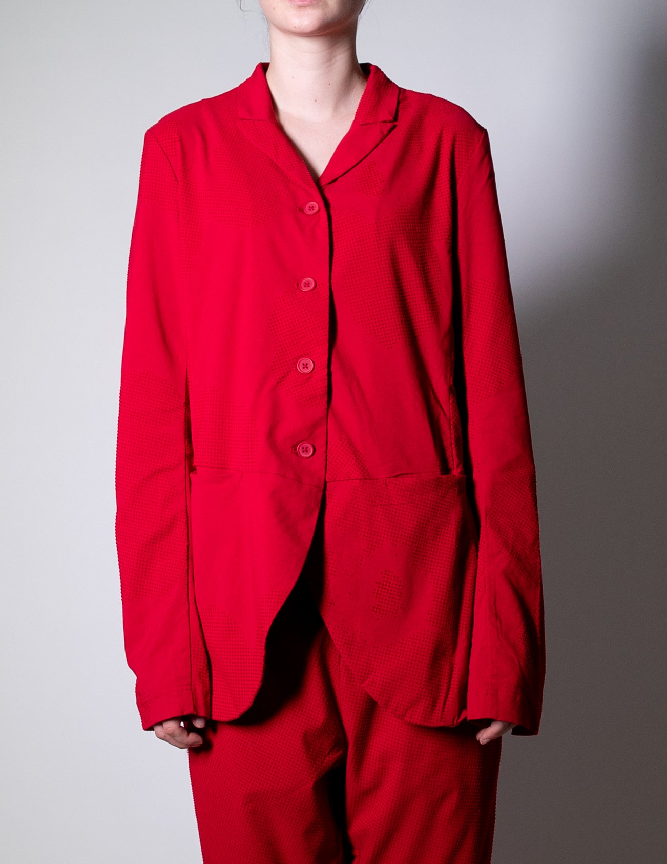 Easy open front pockets add everyday practicality, while the velvet dot flower print brings texture and depth without overpowering the look. Versatile by design, it pairs beautifully with the matching trouser or works just as well as a standout layering piece on its own.
