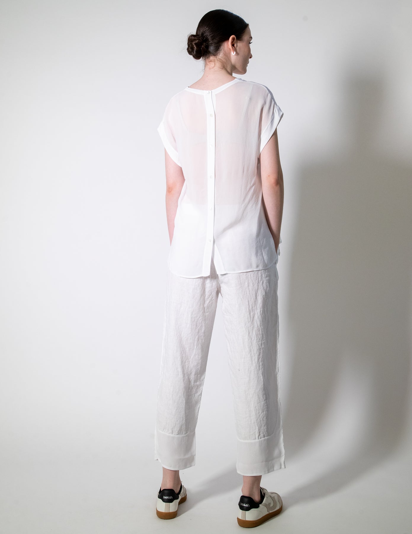 A beautifully balanced cap sleeve top featuring Transit’s signature relaxed silhouette. Designed with a linen front and viscose back for contrast and comfort, it drapes elegantly with a high-low hemline and side splits. Finished with a viscose trim at the sleeve cuff for a refined touch. A versatile piece that transitions seamlessly from day to night.